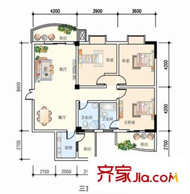 山清轩户型图3室2厅2卫3阳 3室2厅2卫1厨