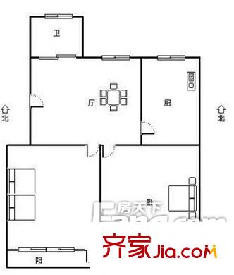 紫郡三期 2室1厅1卫1厨 户型图