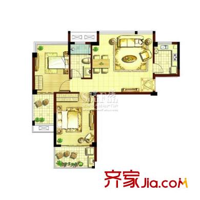 雅戈尔都市丽湾A2户型 2室2厅1卫1厨 户型图