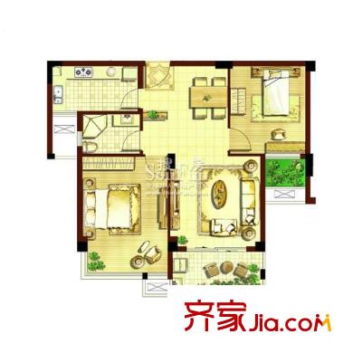 雅戈尔都市丽湾B1户型 2室2厅1卫1厨 户型图