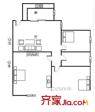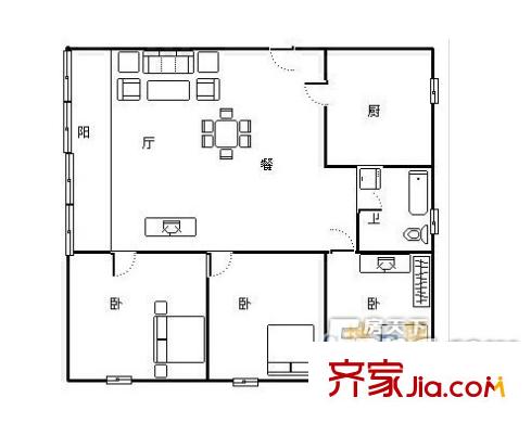 锦地水岸户型图三室一厅 3室1厅1卫1厨