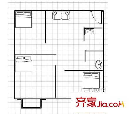 广厦怡庭户型图三室一厅 3室1厅1卫1厨