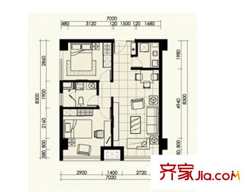 新都美地户型图2室1厅 2室1厅1卫1厨