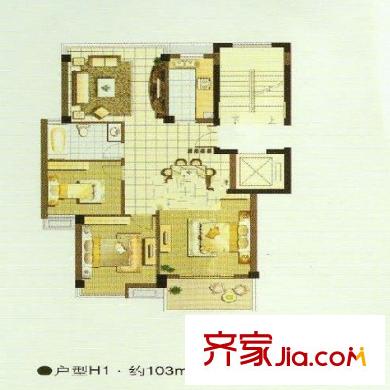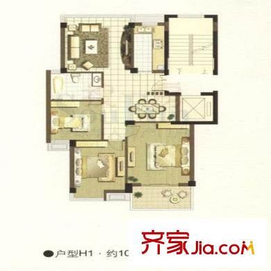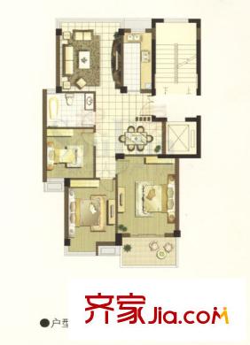 都市森林 3室2厅1卫1厨 户型图