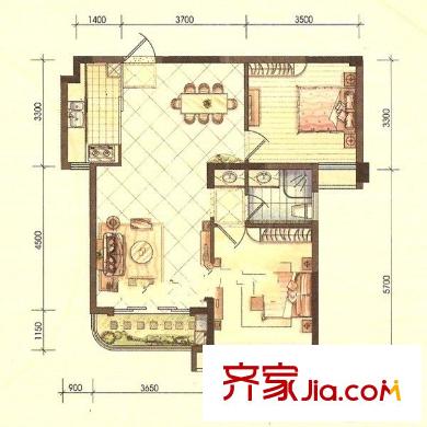 都市森林 2室2厅1卫1厨 户型图