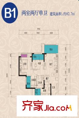 东原长岛B1两室两厅单卫 82.7平方米 2室2厅1卫1厨