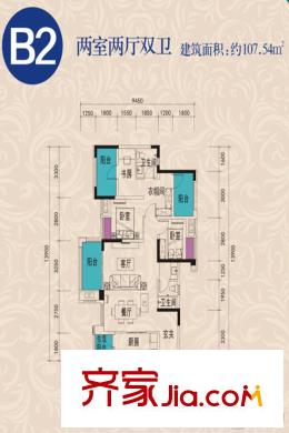 东原长岛B2两室两厅双卫 107.54平方米 2室2厅2卫1厨