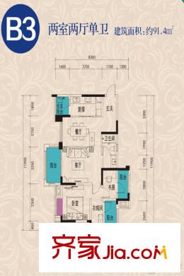 东原长岛B3两室两厅单卫 91.4平方米 2室2厅1卫1厨