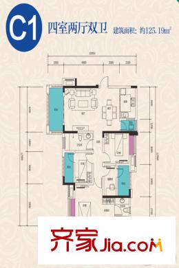 东原长岛C1四室两厅双卫 125.19平方米 4室2厅2卫1厨