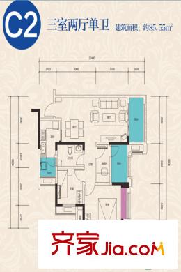 东原长岛C2 三室两厅单卫 85.55平方米 3室2厅1卫1厨
