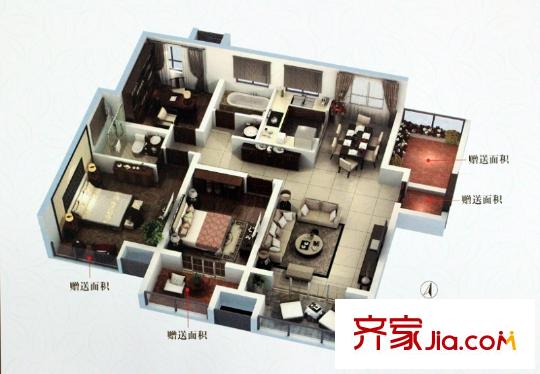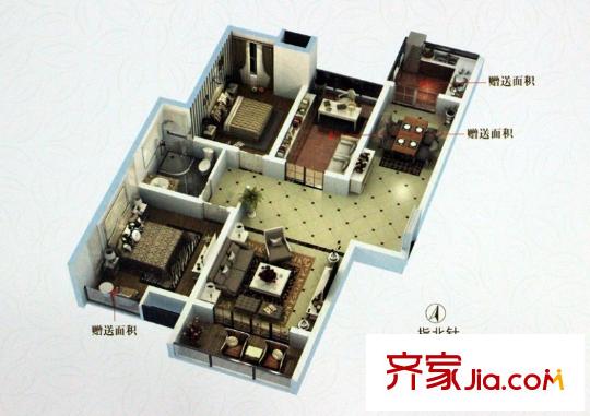 荣昌绿园一期高层B户型 3室2厅1卫1厨