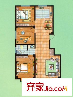 东正・颐锦园二期f户型 3室2厅1卫1厨
