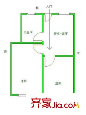 卫生防疫站宿舍(潍城)户型图户型图(2-1-1) 2室1厅1卫1厨