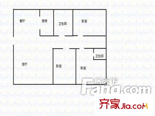 建校宿舍户型图600x600 2室2厅1卫1厨
