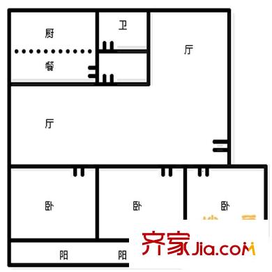 烟草公司宿舍户型图600x600 2室2厅1卫1厨