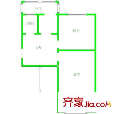 人民医院宿舍户型图600x600 2室2厅1卫1厨