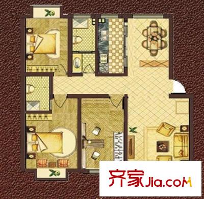 建行宿舍户型图(3室2厅1厨1卫)