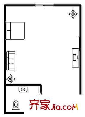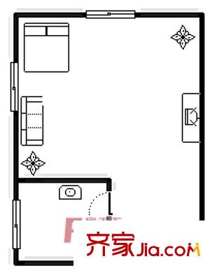 东方曼哈顿户型图南向43平 1室1厅1卫1厨