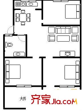 向阳小区(新华路)户型图户型图(3-2-1) 3室2厅1卫1厨