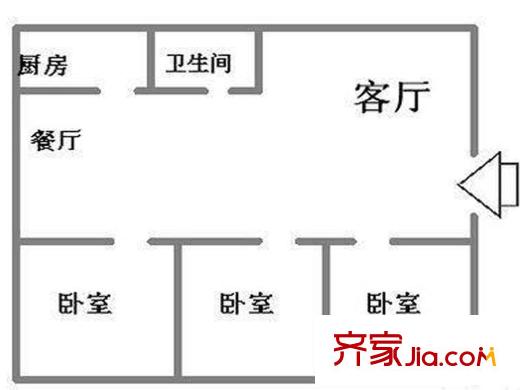 圣基花园户型图户型图(3-2-1) 3室2厅1卫1厨