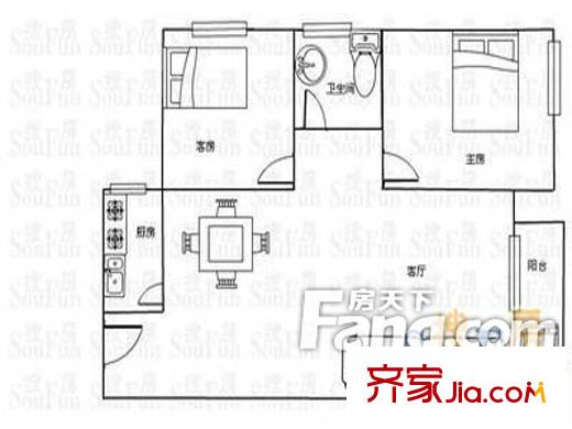 华都花苑户型图华都花园 3室 户型图 3室2厅1卫1厨
