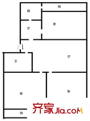 潍城区财政局宿舍户型图600x600 1室1厅1卫1厨