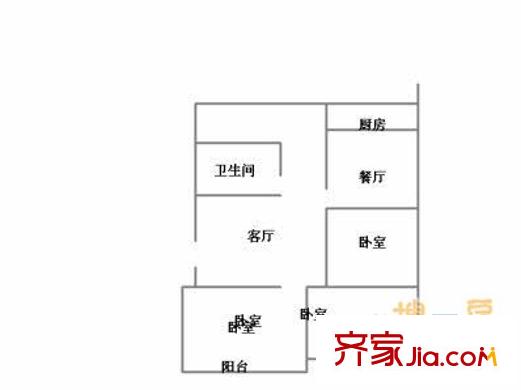 投资公司宿舍户型图600x600 2室2厅1卫1厨