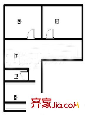 鲁祥小区户型图600x600 2室2厅1卫1厨