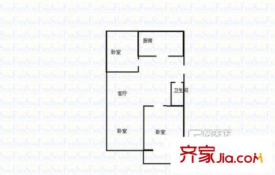 惠通小区(新华乙巷)户型图2室2厅1厨1卫户型图 2室2厅1卫1厨