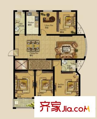 逸景和公馆户型图户型二 5室2厅2卫1厨