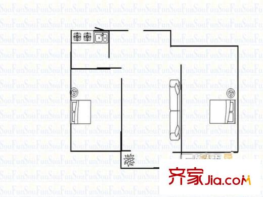 道口小区户型图户型图(201303021) 2室1厅1卫1厨