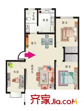 恒信幸福里户型图多层F户型 3室2厅1卫1厨