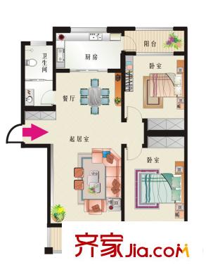 恒信幸福里户型图多层E户型 2室2厅1卫1厨