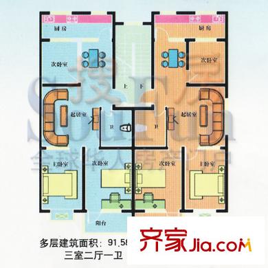 大成新苑户型图多层户型 3室2厅1卫1厨