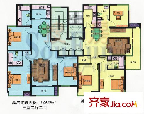 大成新苑户型图高层户型 3室2厅2卫1厨