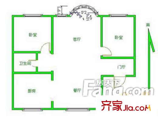 颐园小区户型图600x600 2室2厅1卫1厨