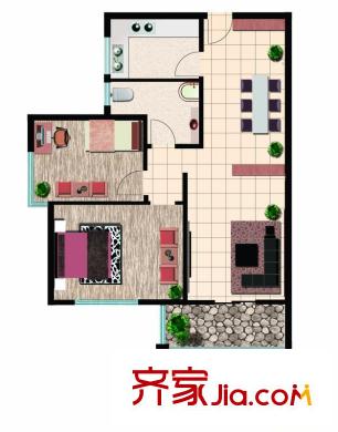 鲁鸿37°户型图阳光两室西户 2室2厅1卫1厨