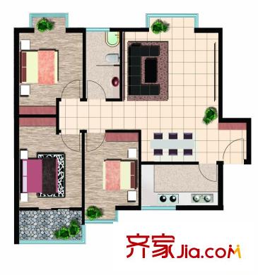 鲁鸿37°户型图睿智三室 3室2厅1卫1厨
