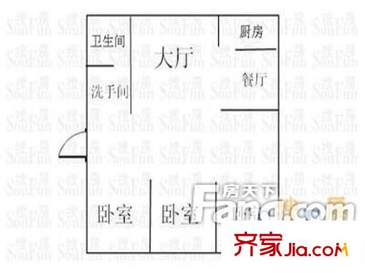 欣嘉苑户型图户型图(2-2-1) 2室2厅1卫1厨