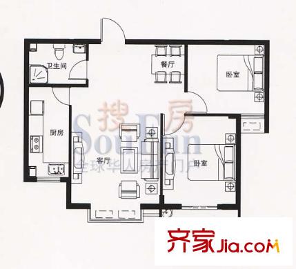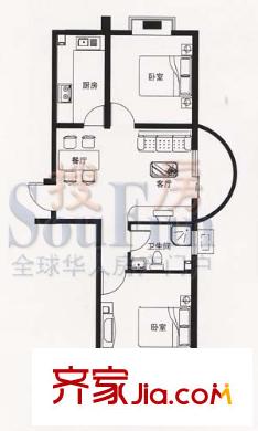 和丰城市花园户型图一期高层住宅标准层户型图 2室2厅1卫1厨