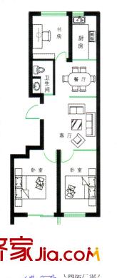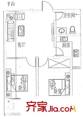 恒信金色城品户型图5号楼标准层南向户型 2室1厅1卫1厨