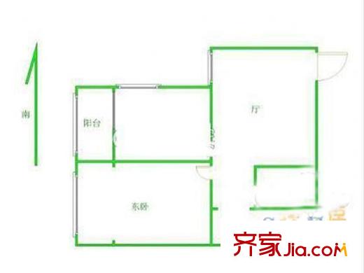 电力三宿舍户型图600x600 1室1厅1卫1厨