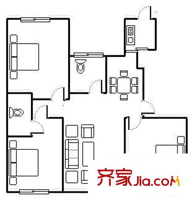 鼎邦丽池户型图高层户型 3室2厅1卫1厨