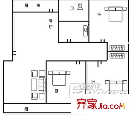 美丽华小区户型图户型(4) 2室2厅1卫1厨