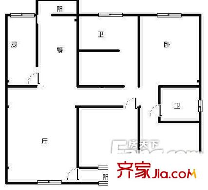 福海花园户型图户型图(2室2厅1厨1卫) 2室2厅1卫1厨