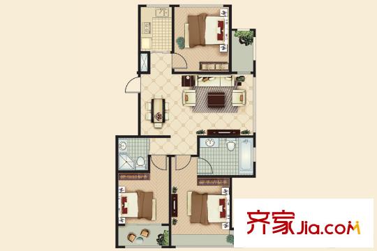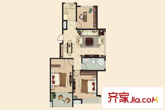 盛唐山河成臻园组团H户型 3室2厅2卫1厨