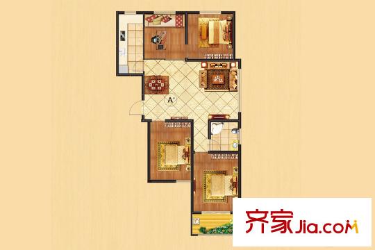 久盛聚福苑1#A户型 3室2厅1卫1厨