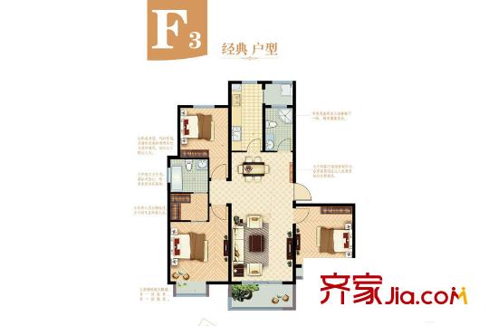 兴源国际城4#F3户型 3室2厅2卫1厨