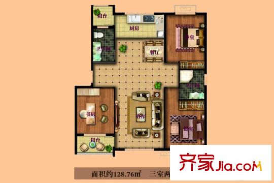 峡山星河湾一期多层8户型 3室2厅2卫1厨