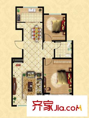峡山中央华府22/27/31#H户型 2室2厅1卫1厨
